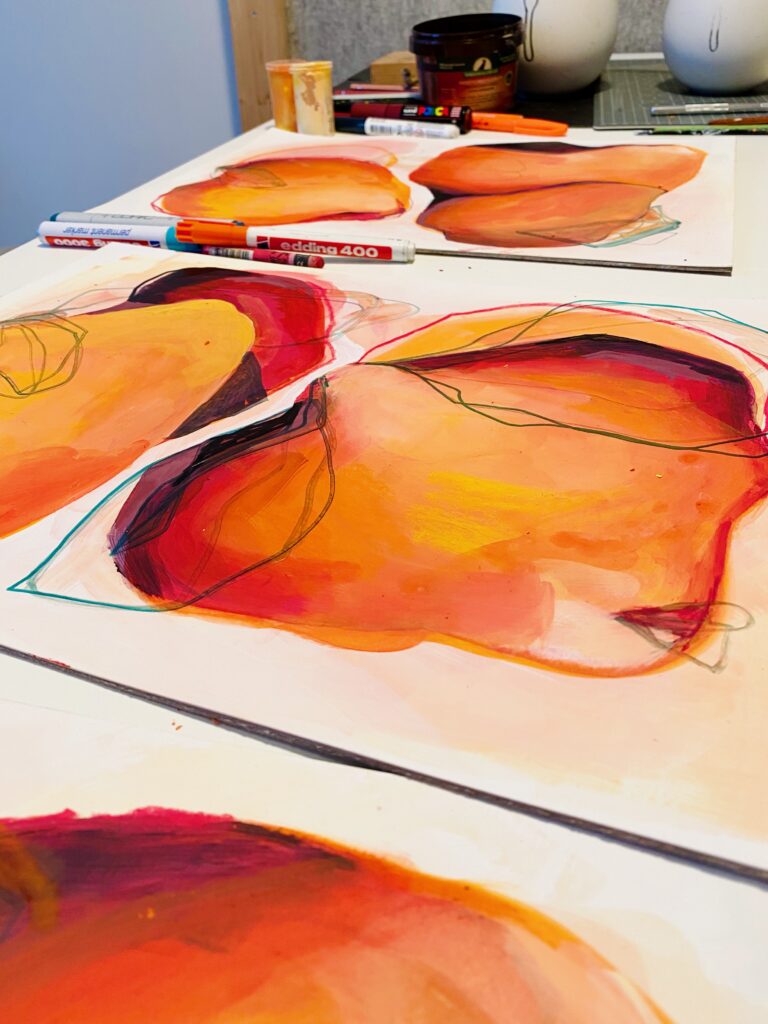 so i am starting a bigger canvas and will continue with my series „my body becomes your body“.