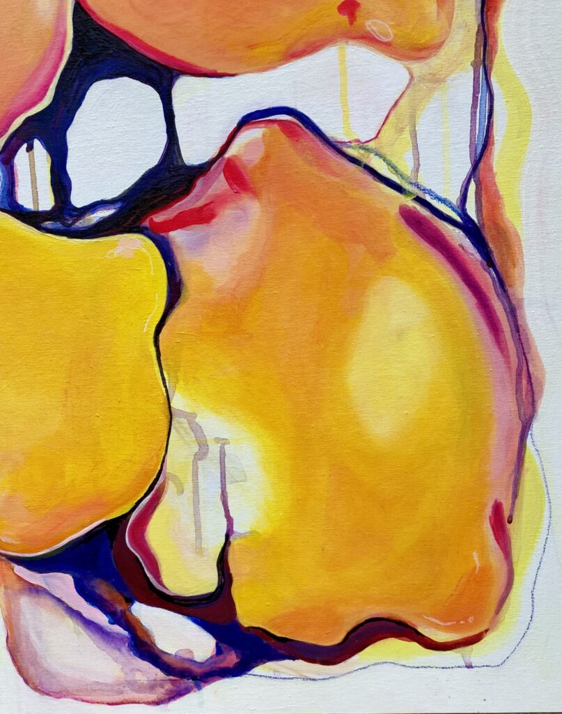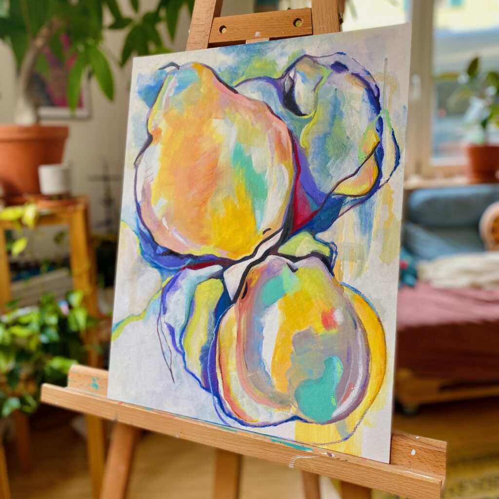 finally done! took a little summer break from painting, but i’ve finally finished these lonely lemons. don’t they look juicy and somewhat perishable? this is the fourth painting in my series: „my body becomes your body“.